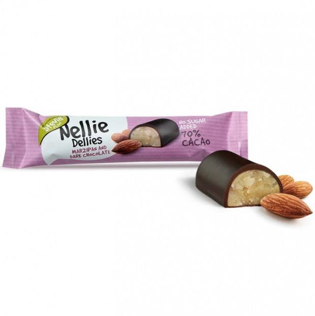 Med Nellie Dellies marcipanbrød er der tale om et marcipanbrød, som ikke indeholder tilsat sukker eller kunstige sødemidler. Ofte kommer man ud for, at selvom der ikke er tilsat sukker, så er de kunstige sødemidler der benyttes ikke sunde, hvilket dog ikke er tilfældet ved Nellie Dellies marcipanbrød. Den marcipan der benyttes er ren marcipan som kun er sødet med Stevia planten og efterfølgende overtrukket med en mørk chokolade som består af 70%kakaoindhold, hvilket også for mange på diverse kurer er at foretrække, da mørk chokolade også har en række sundhedsmæssige fordele.